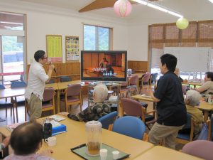 職員の歌声を聴いて楽しまれています。