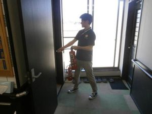 初期消火、通報、そしてここからが私達スタッフが一番緊張する場面でもあります。