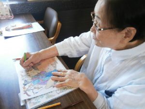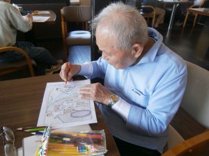 ケアプラス垣生でも 毎日リハビリや入浴の合間に 利用者様同士でお話したり塗り絵をされています。