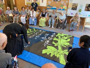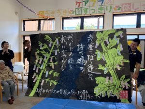 7月の末ですがケアプラス三津では外部より先生をお招きしての書道パフォーマンスのイベントを開催しました。