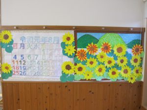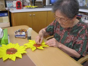 利用者様とカレンダーに貼るヒマワリを作成しました。