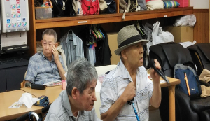 今回も総勢16名の方に熱唱して頂きました。中にはデュエットという方もいて、普段歌わない方も参加され大盛り上がりでした。そして、自信がないから・・・と。他の利用者様と二人で歌われる方もいらっしゃり、大盛り上がりで終わることが出来ました。