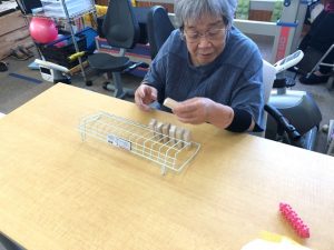 指先の運動をして頂く事で、ご自宅でも洗濯物をたたみや皿洗いが行えています。