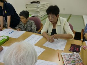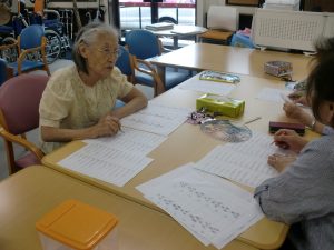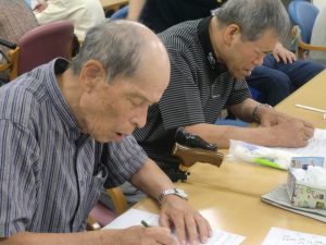 今までは、日曜日に頭スッキリイベントを開催しておりましたが、今回平日にも実施してみました。今回は職員が手書きで用意した、手作り感溢れるプリントを皆様に挑戦していただきました。