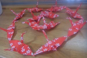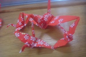こちらはご利用者様が作った鶴です。たくさん作って、きめ込みで繋げておられます。