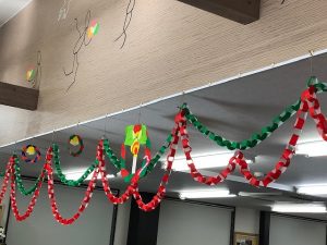 今回、フロアには緑と赤の輪っかで作った飾りつけでますます賑やかに。