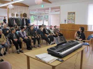 資格を持ったケアプラス宇和島のスタッフによる音楽療法を、月に1度開催しております。