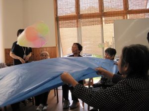 カスタネットやタンバリン等の簡単な楽器を奏でる、歌に合わせて踊る、歌うなど、脳を活性化させるばかりではなく、気持ちを落ち着かせ、リラックスして頂きます。
