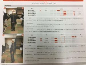 未来姿勢では筋肉の硬くなりやすい部分や、脂肪がつきやすい部分まで解析され、今後のリハビリにとても有効的に活用できます。