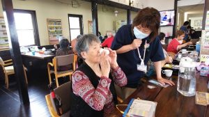 毎年帰ってたのですが、コロナの影響で郵送されてきました。思いがけないプレゼントはやはり嬉しいものですね。そんな母の日の出来事などを利用者さんとお話してたら、「私は娘から よくお母さん、ちゃんと薬のみよる?って言われるんよ。私 昼はよく忘れるけん、ここに来たらご飯終わったら配ってくれるけん安心よ。」と笑って話される方が何人かおられます。