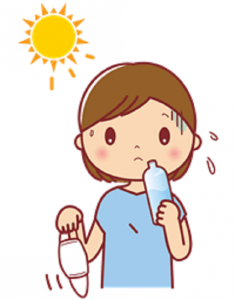 熱中症の原因は、体温の上昇で汗をかき、体内の水が不足すること(脱水)だと思われていますが、実のところ、脱水だけではありません。体内のミネラル、特にナトリウム(塩分)を失って、脱水になってしまうのですね。体内の水不足になる原因として、体内の塩分不足があるのです。その為、水分と塩分を摂るようにしましょう。塩分の摂り過ぎが不安なときは夏野菜や果物を摂取するのも良いと思います。果物ならバナナやキウイ、グレープフルーツなど、夏野菜では、トマトやキュウリなどがあります。