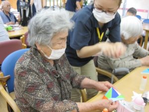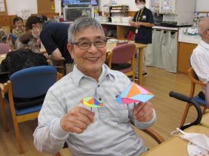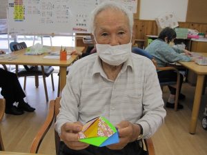 他にも創作レクレーションを色々と考えていますので、このどんよりとした梅雨を皆さんと明るい気持ちで手先のリハビリをしながら乗り越えたいと思います。