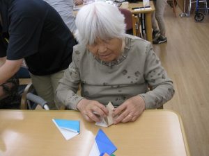 この創作レクレーションも手先のリハビリになります。