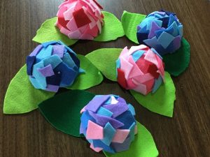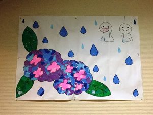 今月にちなんだアジサイの置き飾りを作って頂きました。