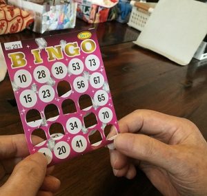 実はビンゴカードの穴を開ける…これも指先を動かすリハビリの一つでもあります。