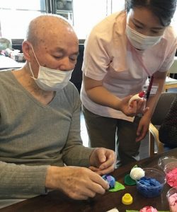 高齢者の皆様に健康的な生活を送ってもらうためには、筋力を高める運動も大事ですが、同時に手先を使うレクリエーションなども行うことで
