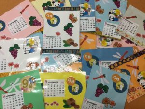 ミニカレンダーは9月用なのでお月見やドングリなど秋を思わせる絵柄になっております。皆様、素敵に仕上げられておりますね。