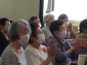 利用者様方からは「よかったよ!」「すごい楽しかった。」「久しぶりに気分がすっきりしたわ。」「1年寿命が延びた。」等々の声が聞かれました。まだ梅雨明け前の頃でしたが、久々の晴れの日、梅雨の晴れ間の素敵な一日となりました。全17曲もの演奏を嶋本さん、ありがとうございました。
