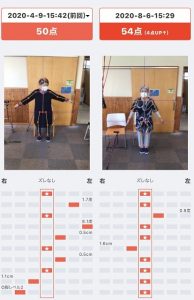 こちらは5月に姿勢測定を実施した時の画像と8月に実施したものを見比べたものです。