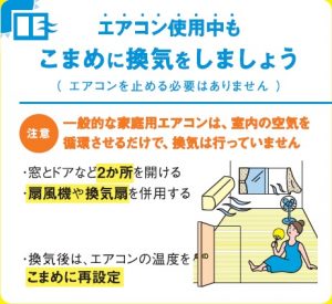 エアコン使用中もこまめに換気をしましょう。(エアコンを止める必要はありません)