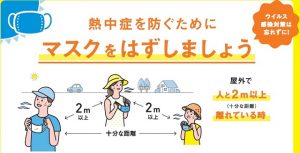 熱中症を防ぐためにマスクをはずしましょう。ウイルス感染対策は忘れずに!
