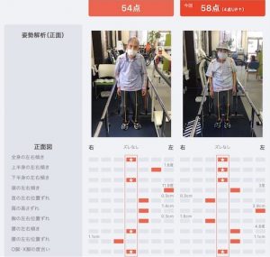 さて今月は姿勢解析の撮影の結果について着目し、リハビリがどのような事を行い結果どうなったかを報告していきたいとおもいます。