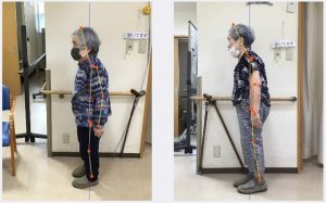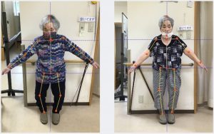 姿勢が良くなったことで、椅子からの立ち上がりもスムーズになって、歩幅も広げて歩けるようになってきました。
