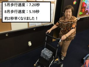 その結果、5月よりも8月の方が良くなっておりました。5mを5秒で歩ければ、横断歩道を安全に渡れることが出来る数値となっております。