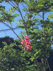 ケアプラスの百日紅は遅咲きな性格なのでしょうか…一つ二つ咲いております。