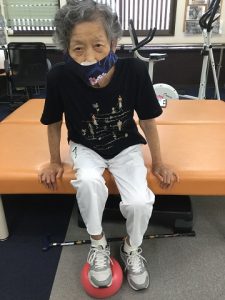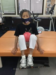 今後の目標は家事をしていると背がだんだん丸くなる事を少しでも改善したいを目標に訓練を行っています。T様は「私がネットに出るのは恥ずかしい」と始め訴えていましたが