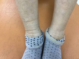 - 靴下のゴムの跡がくっきりくびれたようになる