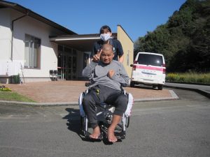 ケアプラス宇和島は青葉台という山の上にあるので、この時期になると紅葉している木がチラホラ見えます。お天気の良い日は涼しい風が吹き、まさにお散歩日和です!秋の景色を楽しみながら、気分転換をされています。