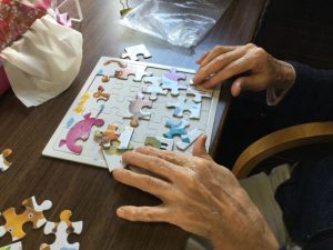 「なかなか出来んなぁ。」と言われながらも、ジグソーパズルをされる方もいます。