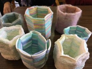皆様、夢中で作成されました。この中に飴やクッキーを入れたいですね。葉っぱの小物入れは和菓子が似合いそう!