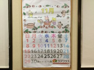 そして貼り絵。10月に作成していただいた貼り絵は11月現在、フロアに飾られています。