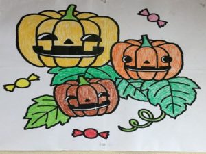 最後に日曜日の創作レクの作品を紹介します。ハロウィンのカボチャのお化けをかたどった小物入れです。