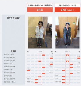 前回8月の測定から11月までの3ヶ月で、姿勢のズレが減ってきたことが分かります。