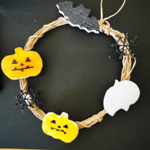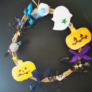 完成しました。ハロウィンらしいリースになりました。
