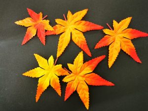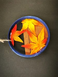 こちらは紅葉のリースです。紅葉の造花を貼り付けて作りました。