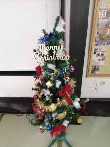 クリスマスといえばクリスマスツリーですよね!という事で先日毎年恒例のクリスマスツリーの飾りつけを行いました。「どのパーツを飾ろうか」と少し盛り上がりを見せながら飾りつけを行います。クリスマスらしくなってきましたね。