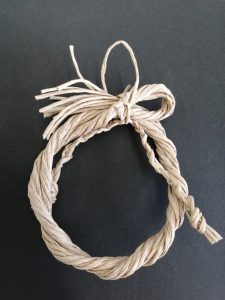 2020年も残り半月という事で12月の日曜レクリエーションでは正月のしめ縄作りを行いました。今回は紙紐でしめ縄を作っていきます。「こんな紐でできるん?!」とびっくりされながら皆さんで作っていきます。