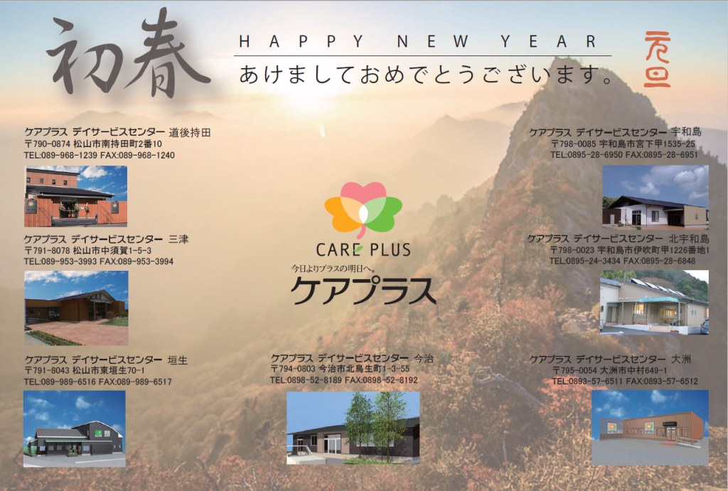 本年も社員一同、「心」・「頭」・「体」のリハビリにて利用者様の「今日よりプラスの明日へ」繋がるサービスを心がける所存でございます。