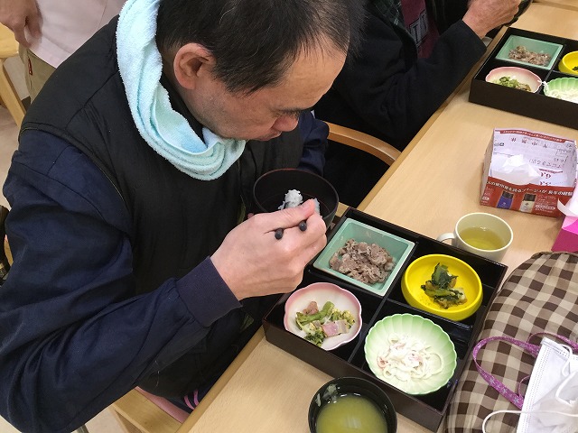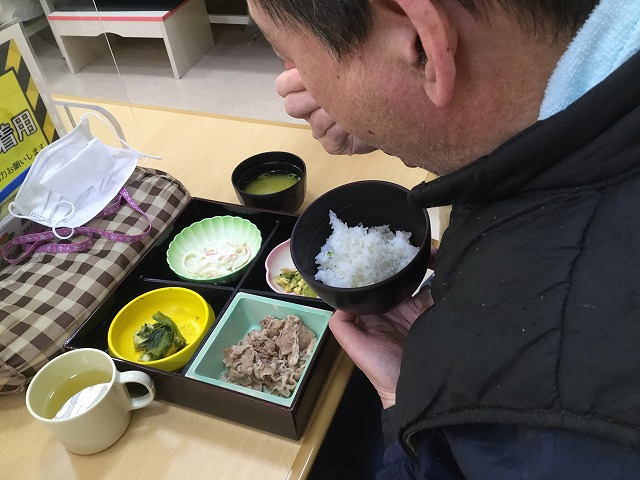 お昼には左の動きにくい手でお茶碗を持って、いつもご飯を召し上がっておられます。