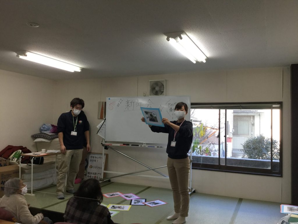 さて、今回は1月に行ったイベントを紹介します。ケアプラスでは、「心・頭・体」のリハビリを提供しております。イベントもそれに合わせて開催しております。