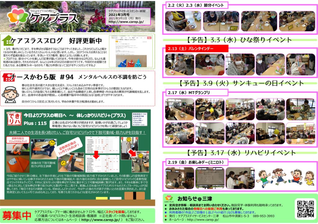3月も新様式に沿った春らしいレクリエーションでしっかり楽しんでいただきますので、お楽しみに♪