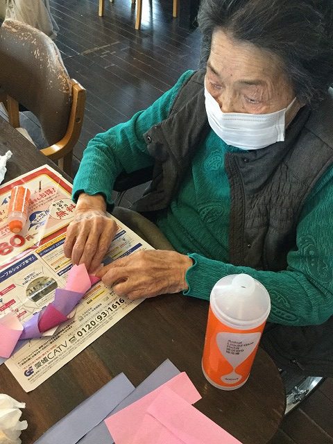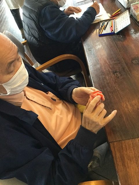 日曜日は平日と違ってゆったりと過ごして頂きながら、リハビリや創作レクに取り組んで頂いております。