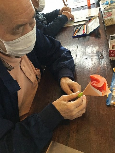 日曜日にはあまりする事が無い為、初めてされる方もおり、皆様、見本を見ながら試行錯誤されていました。