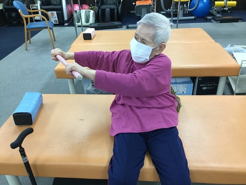 手軽に行える運動としては棒体操等がありますので、首や肩の周囲、特に肩甲骨周りをよく動かすようにしていきましょう。