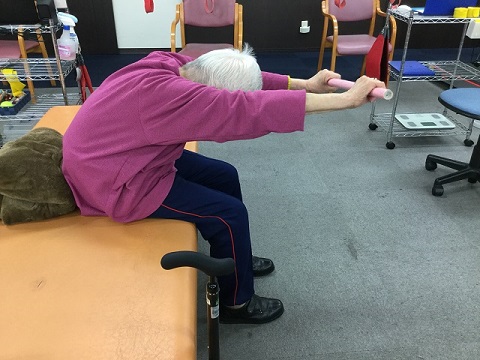 運動中に後ろに転びそうと不安のある方は、後方にクッション等を敷いておくと安心して行うことができるかと思います。