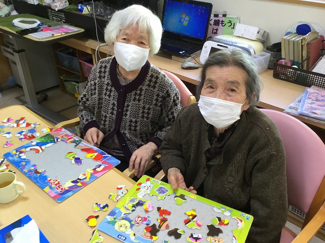 こちらの方はパズルに集中しておられたのですが「写真いいですか?」とお声をかけると「ええよ、きれいに写してな」とそろって笑顔を見せていただけました。